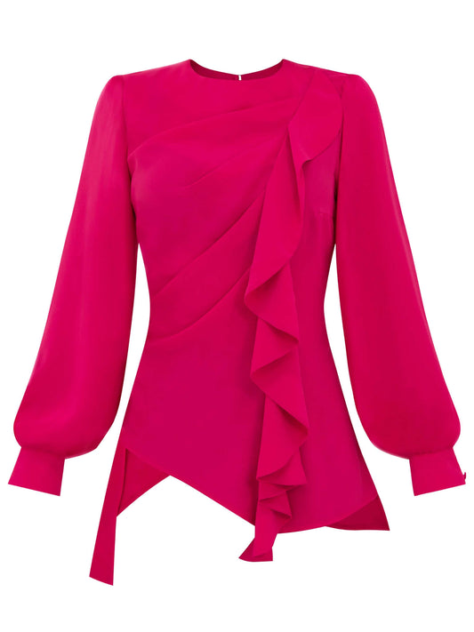 Dress to Impress Asymmetric Drape Blouse - Pink