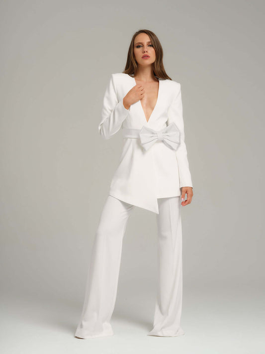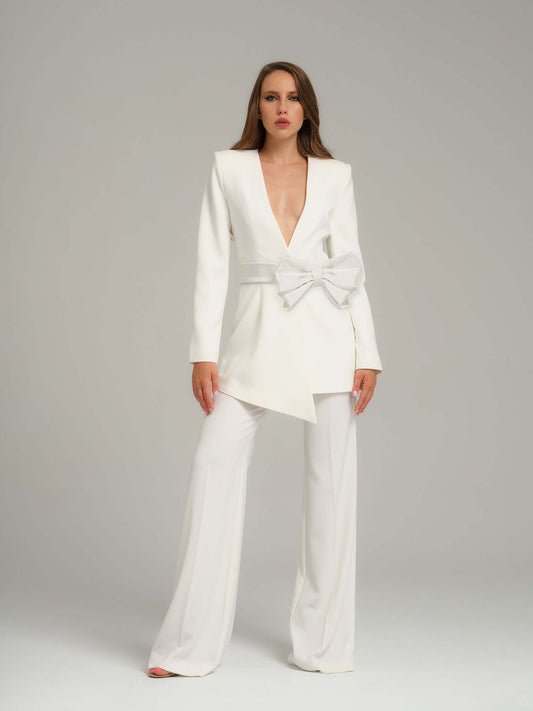 Perfectly Romantic Cropped Blazer with Embroidery - Pearl White