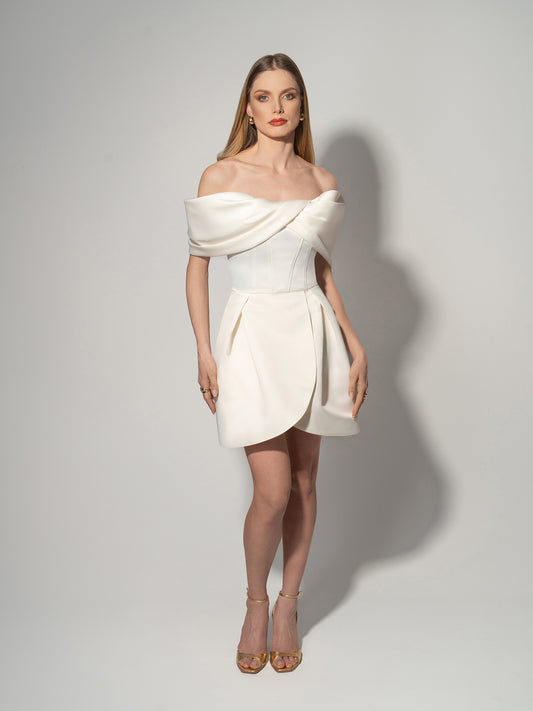 Love in Bloom Off-Shoulder Mini Dress - Pearl White