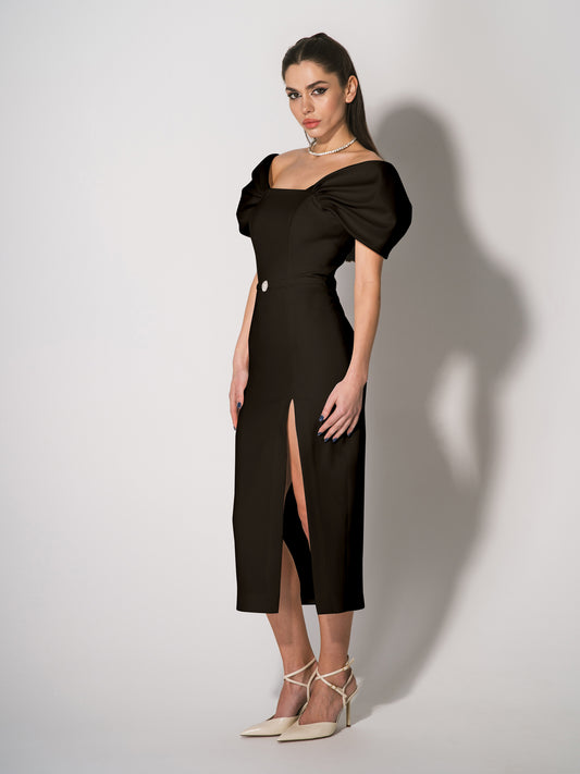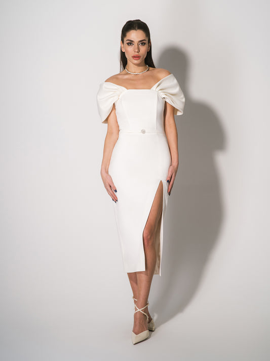 Mirage Crystal Ornament Midi Dress - Pearl White