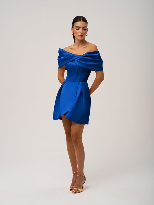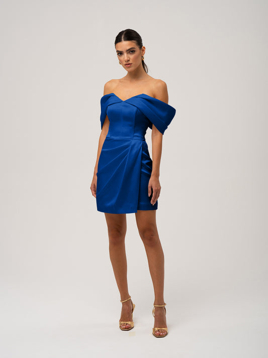 Heavenly Kissed Draped Satin Mini Dress - Azure Blue