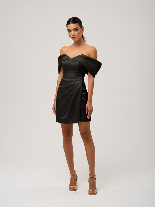 Heavenly Kissed Draped Satin Mini Dress - Black