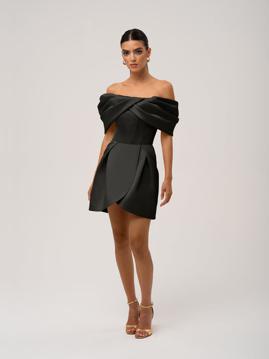 Steel Confidence Off-Shoulder Mini Dress - Black
