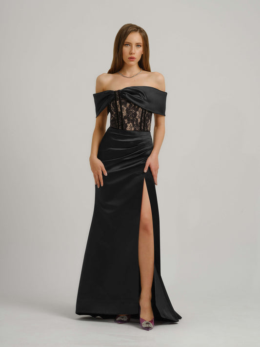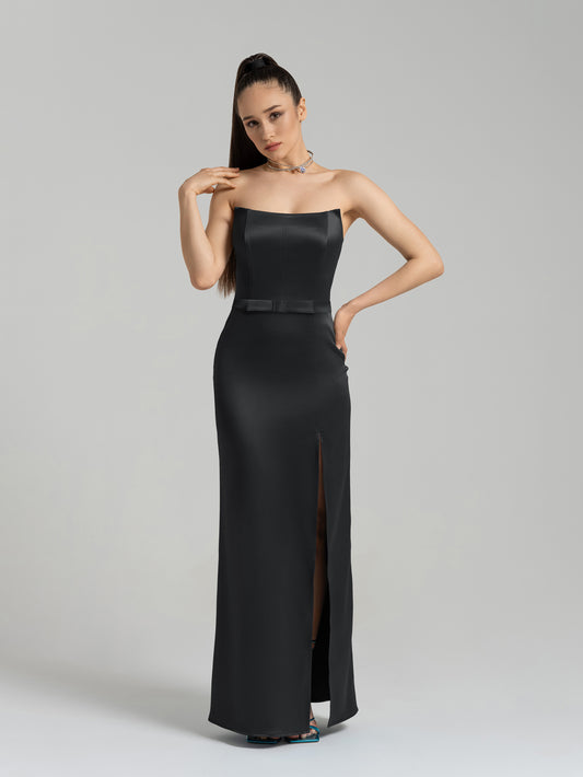 Queen of Hearts Satin Maxi Dress - Black