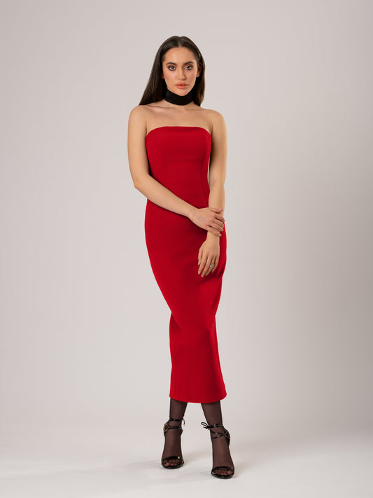 Kiss Me Fitted Bustier Midi Dress - Red