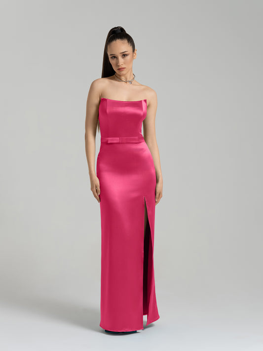 Queen of Hearts Satin Maxi Dress - Hot Pink