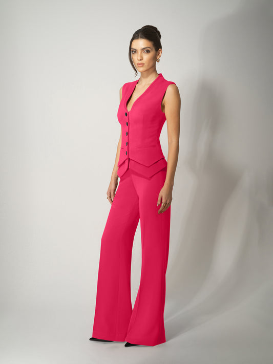 Fitted Waistcoat & Trousers Set - Hot Pink