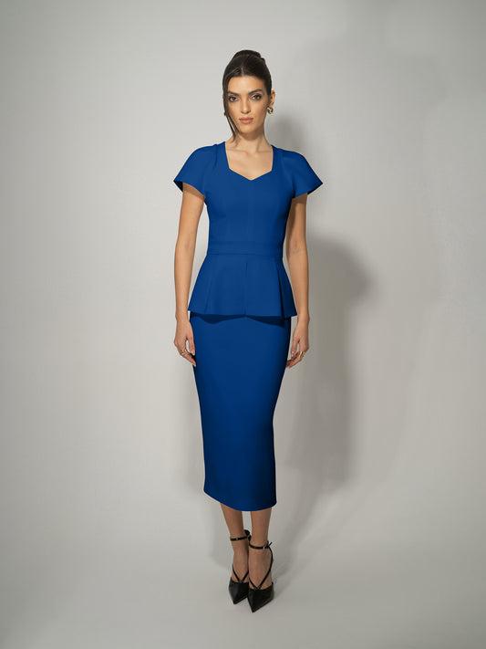 Fitted Waistcoat & Skirt Set - Azure Blue