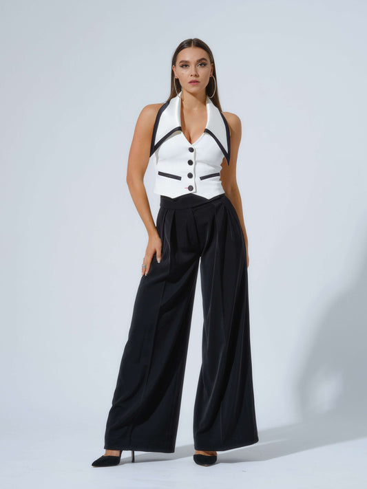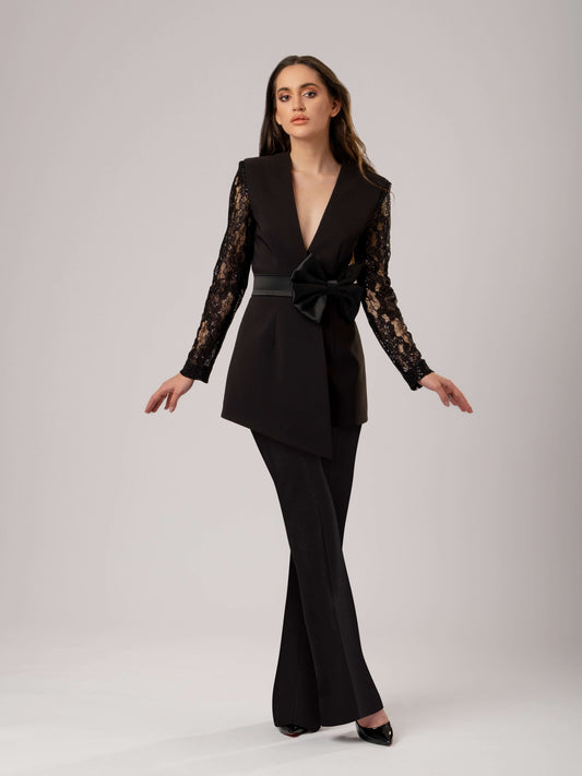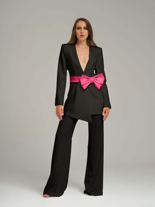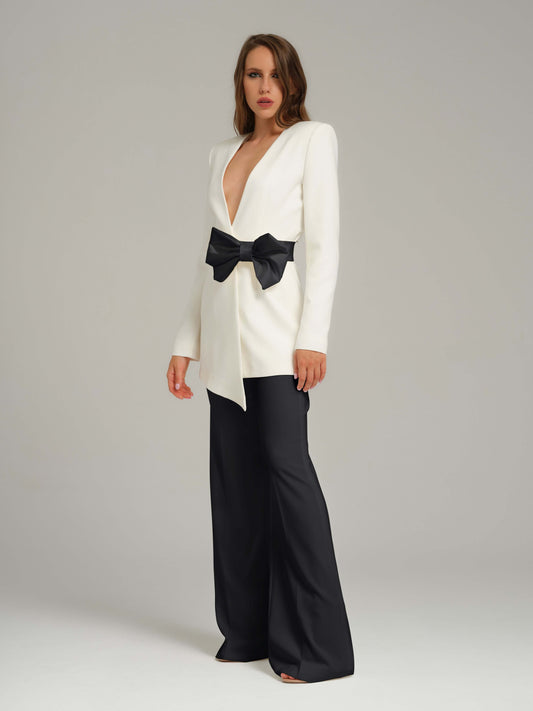 Rare Pearl Power Suit with Bow Belt - Black & White