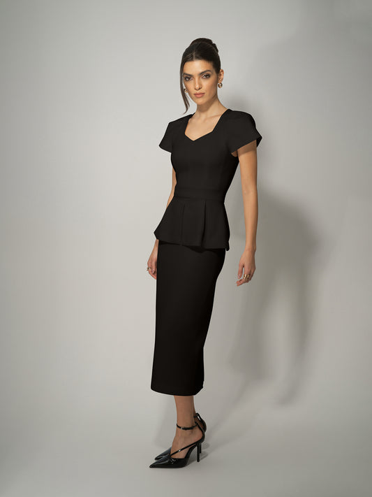 Short-Sleeved Fitted Top & Skirt Set - Black