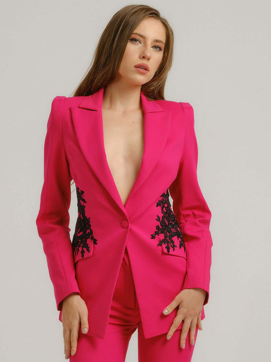 Short-Sleeved Fitted Top & Skirt Set - Hot Pink