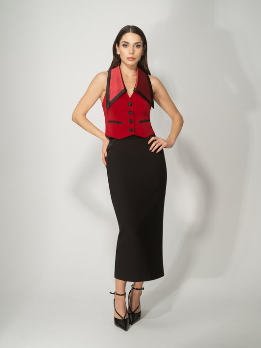Born to Run Cropped Tailored Waistcoat - Fierce Red