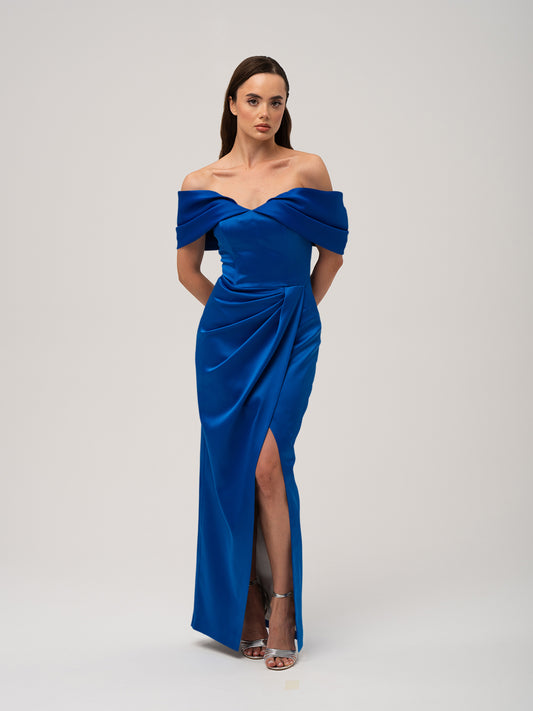 Heavenly Kissed Draped Satin Maxi Dress - Azure Blue