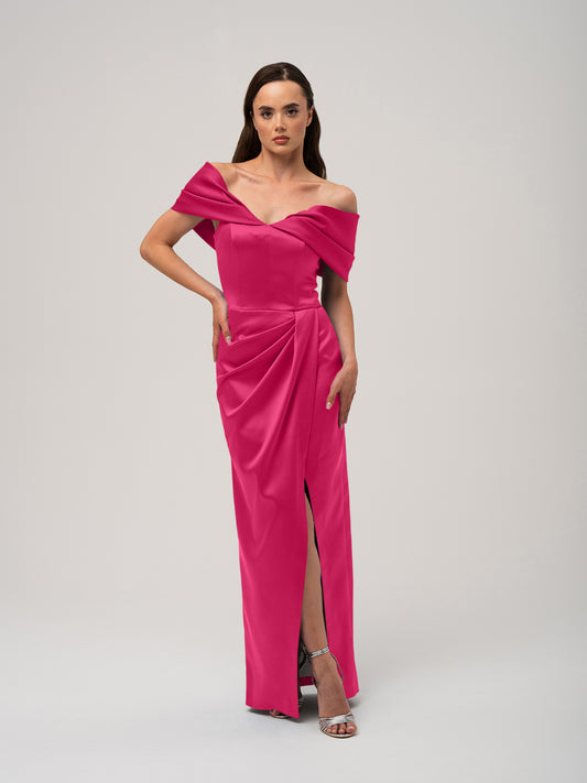 Heavenly Kissed Draped Satin Maxi Dress - Hot Pink