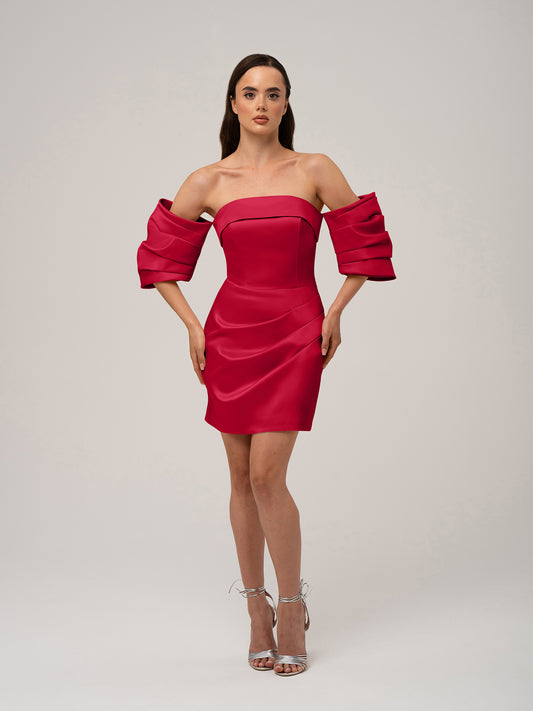 Devotion Mini Dress with Detachable Sleeves - Fierce Red