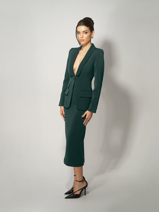 Vision Timeless Single-Breasted Blazer - Dark Green
