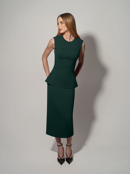 Sleeveless Waist-Fitted Top - Dark Green