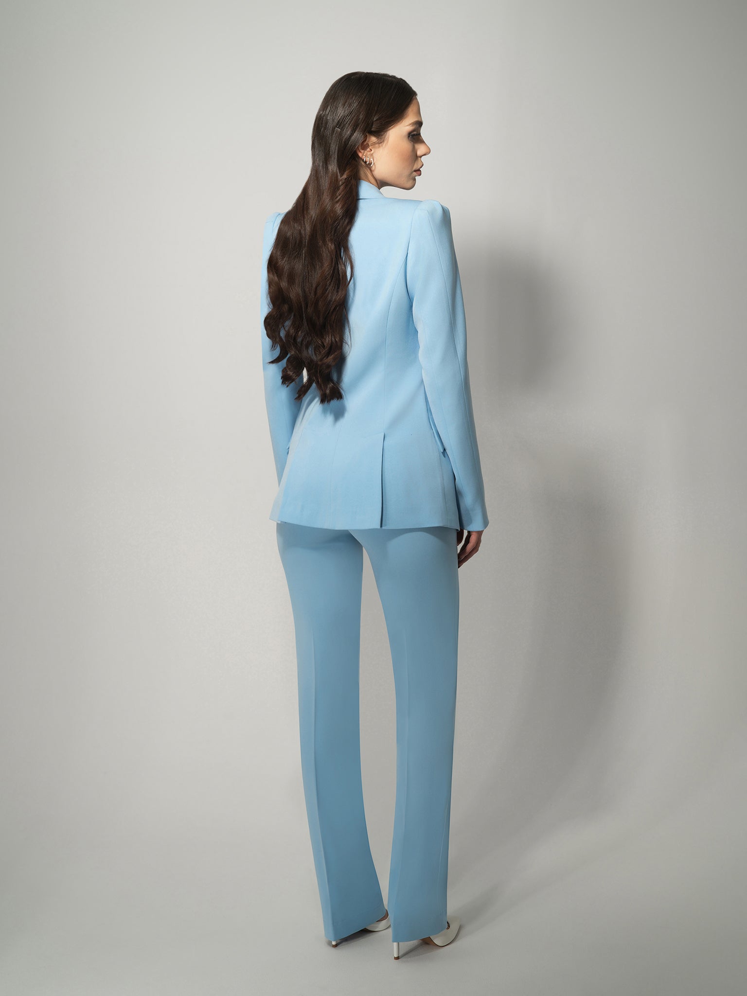 Tia Dorraine masters the art of modern tailoring with this fully lined light blue blazer.