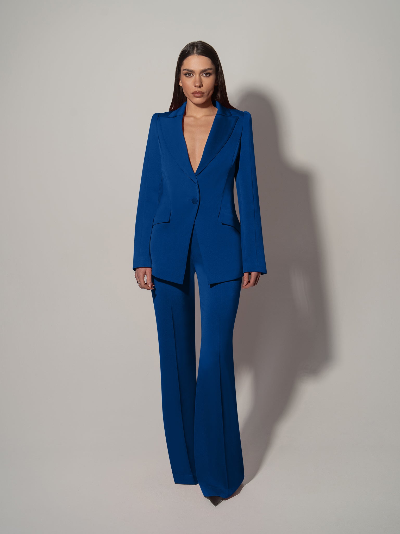 Tia Dorraine masters the art of modern tailoring with this azure blue power suit.