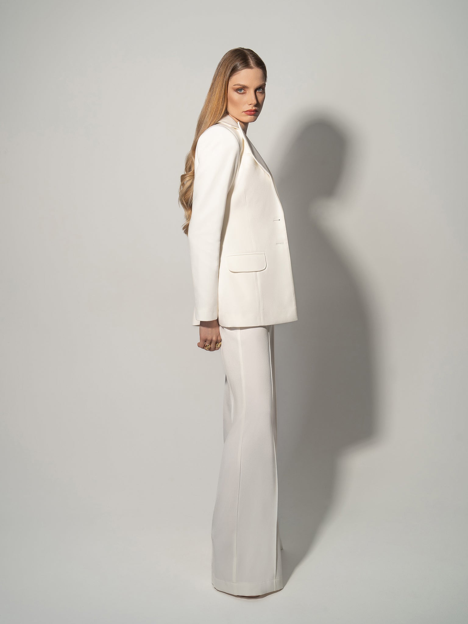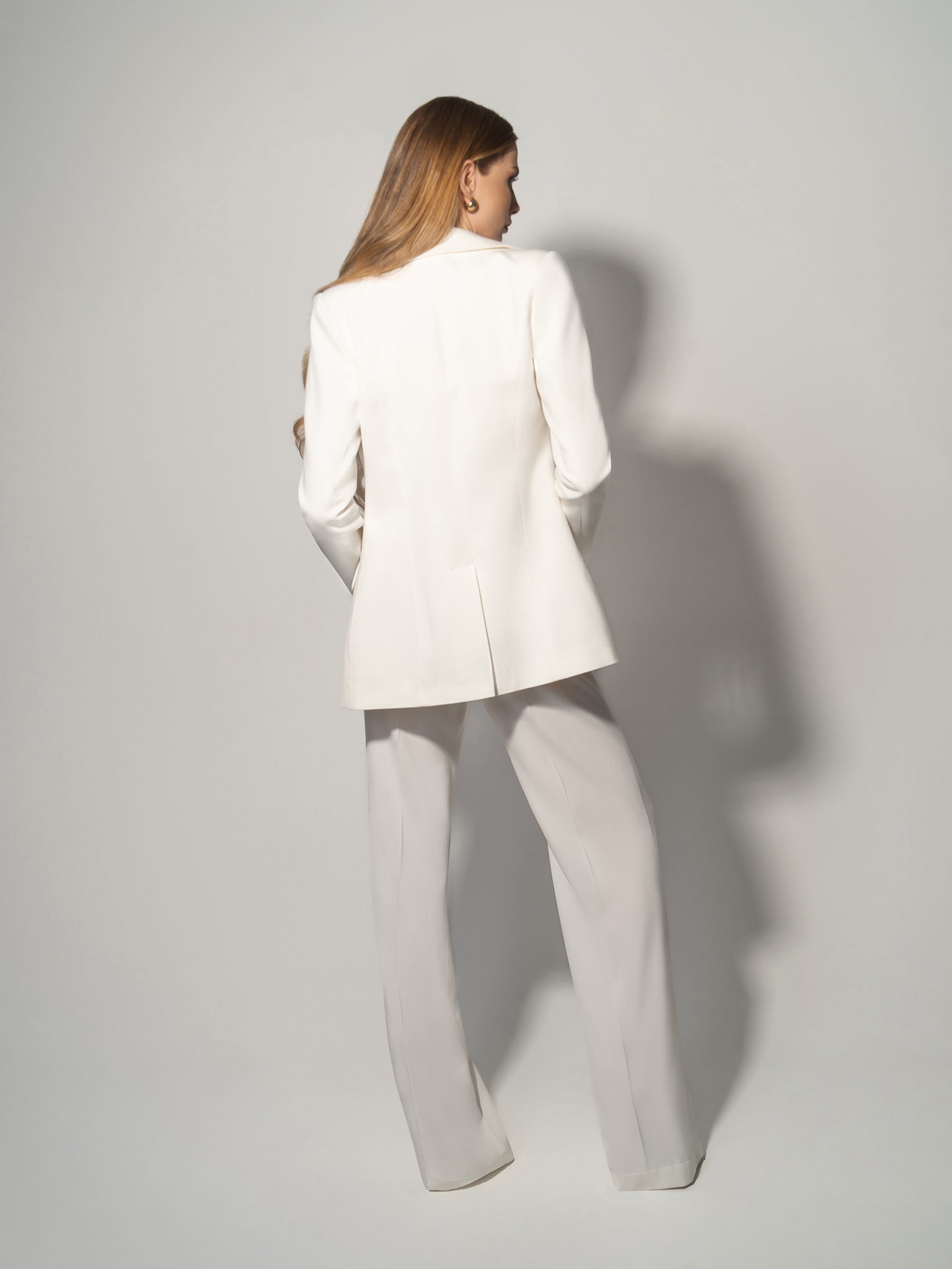 This sleek essential is perfect for those who favour timeless classics. Tailored from a luxurious stretch crêpe fabric for a tailored fit, it offers comfort and lasting quality. It’s a polished piece you'll keep on rotation season after season with its minimalistic single-breasted design.