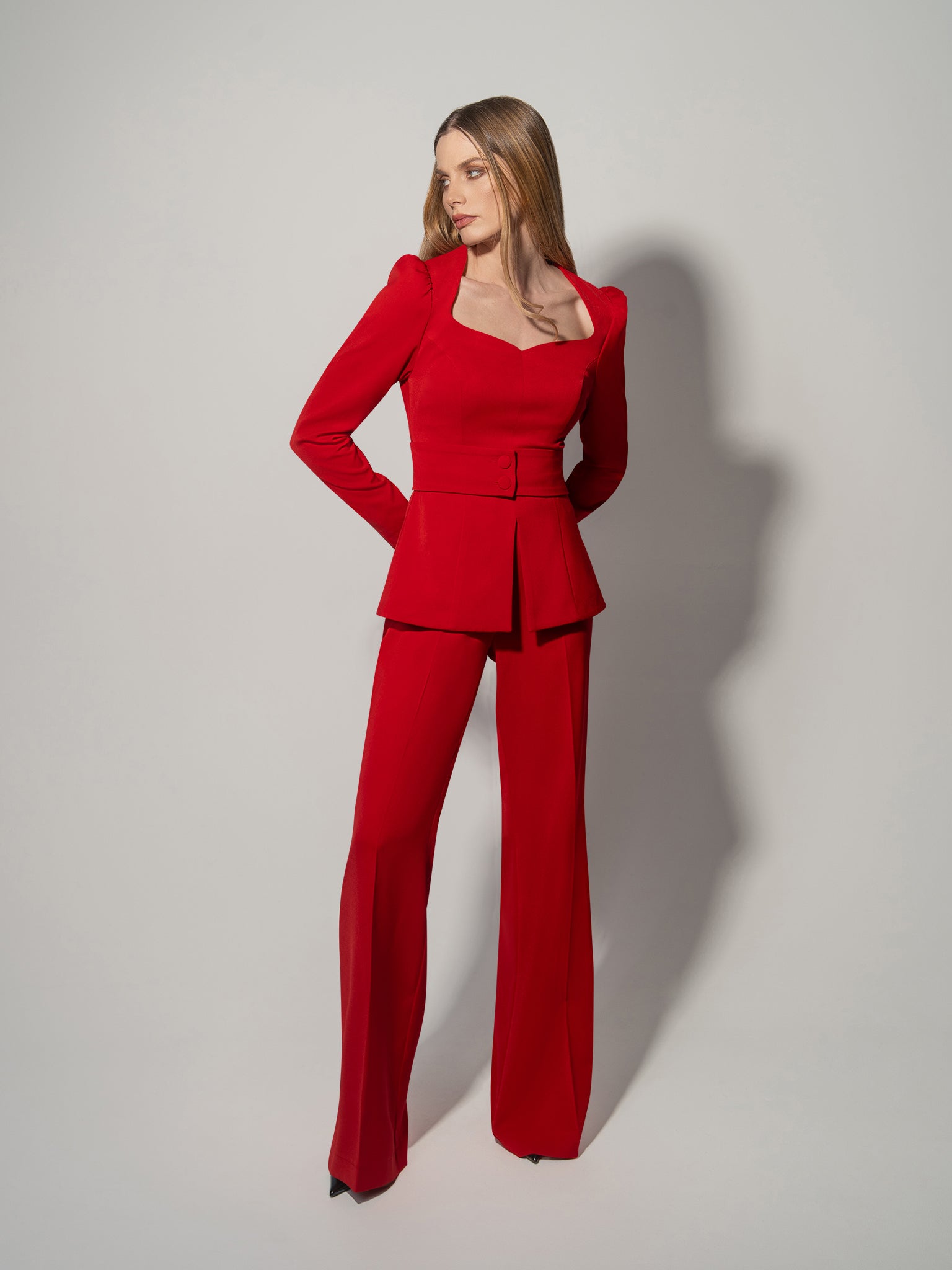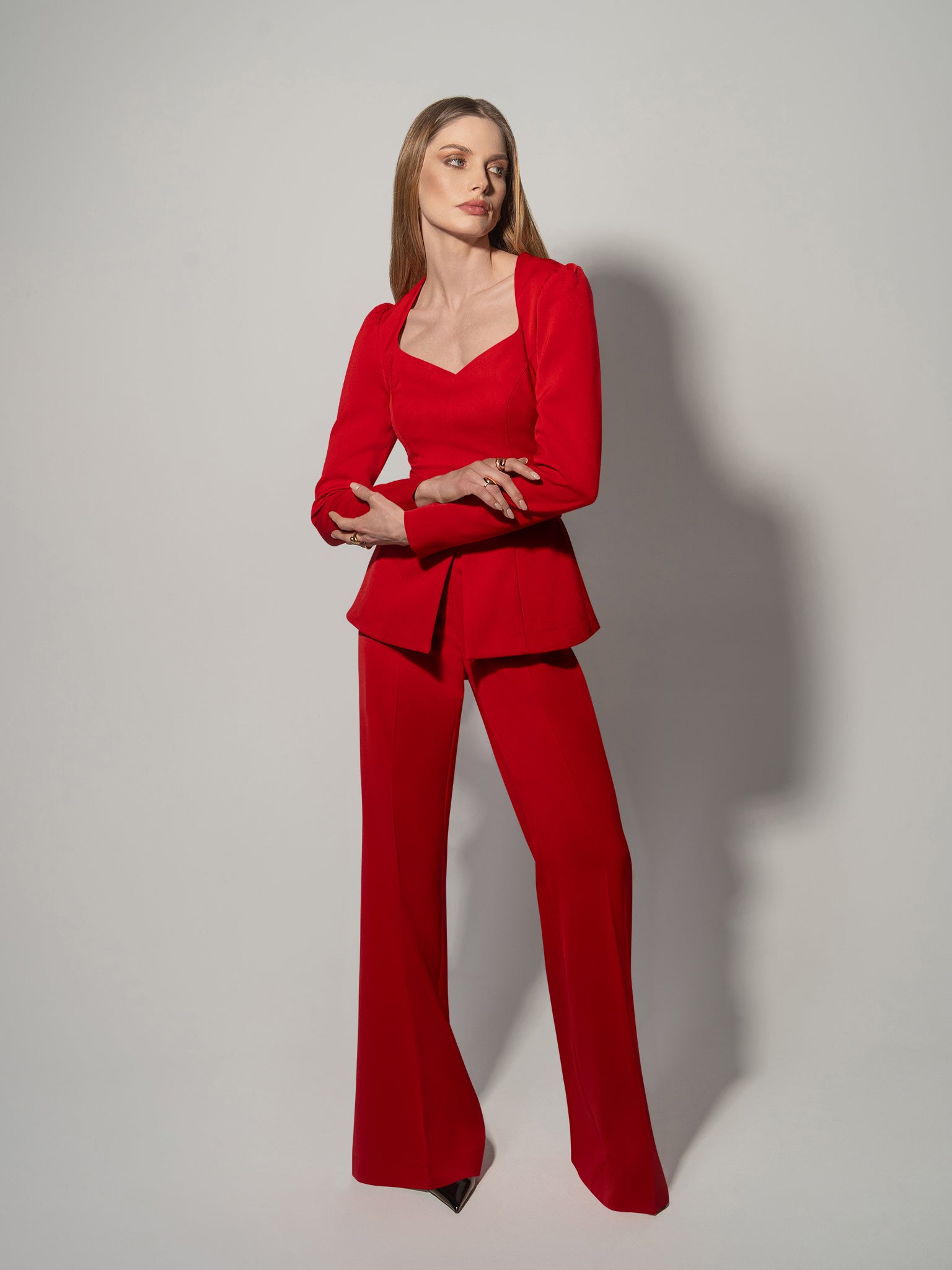 The must-have classic trousers are a true investment piece as they will transition effortlessly between seasons. This versatile piece is tailored with a high waist, and a flared leg in floor length, smartened up with pressed creases.