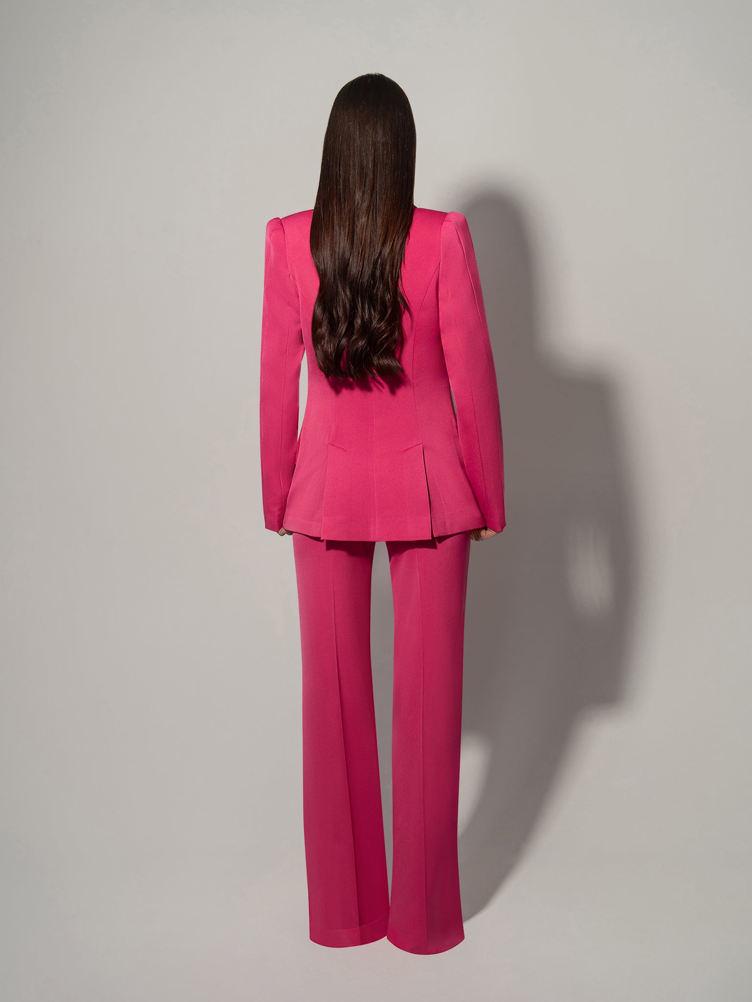 Tia Dorraine masters the art of modern tailoring with this hot pink power suit.