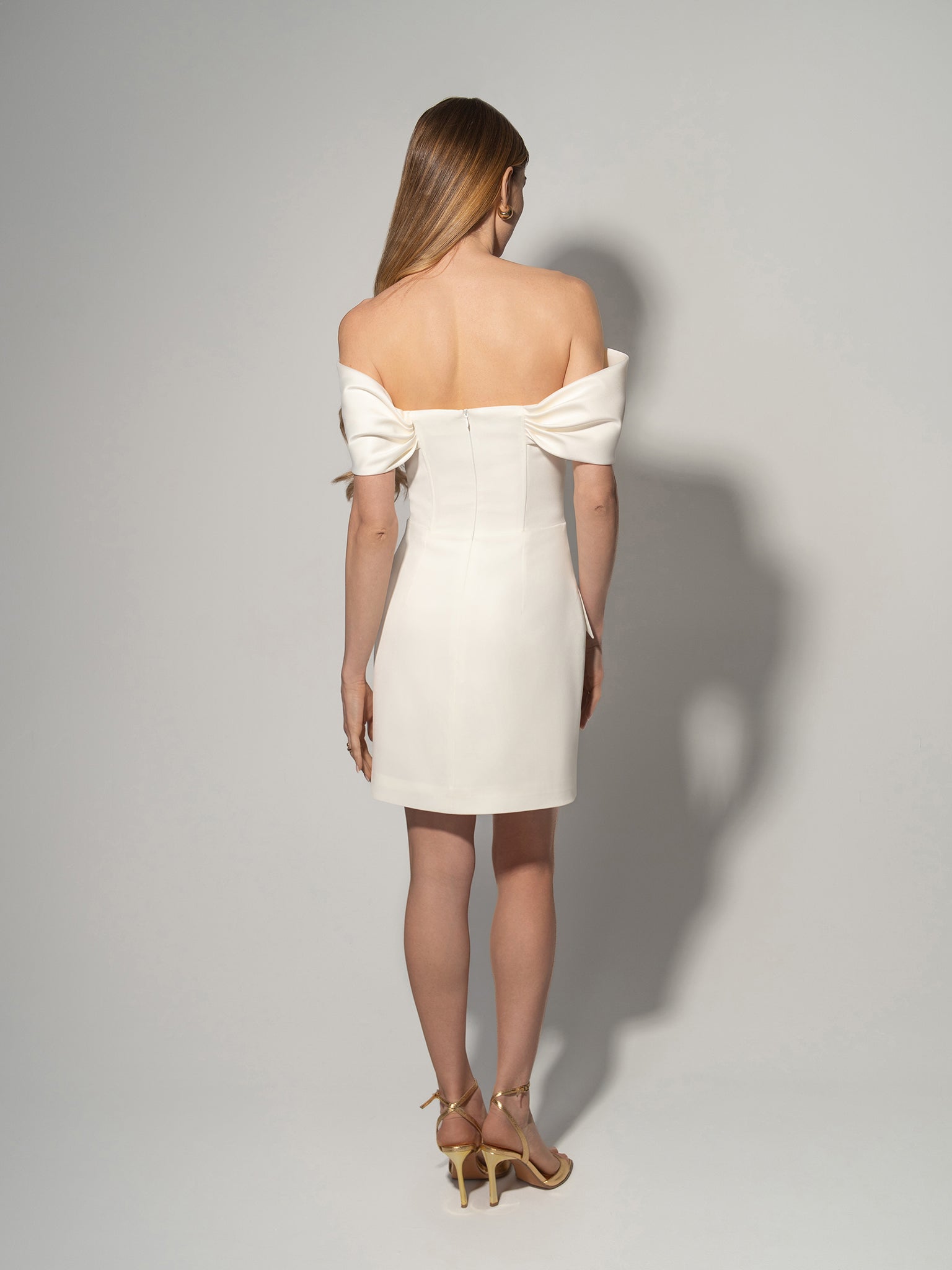 Steel Confidence Off-Shoulder Mini Dress - Pearl White