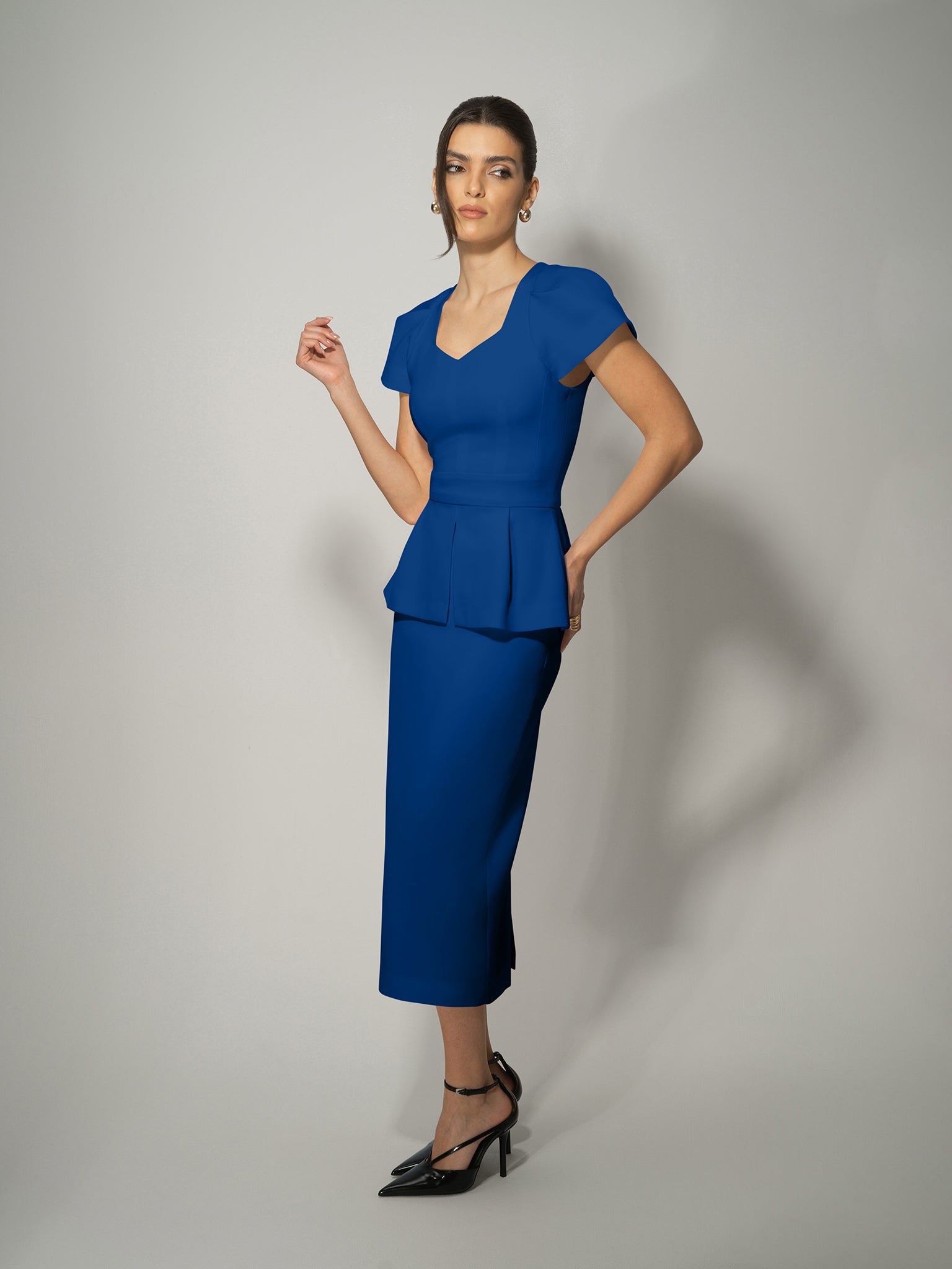 Elevate your capsule collection with this stylish azure blue midi skirt. Simply feminine and highly versatile, it is crafted from a luxurious stretch crêpe fabric in a figure-hugging silhouette. It is high-waisted and fully lined with silky satin for comfort.