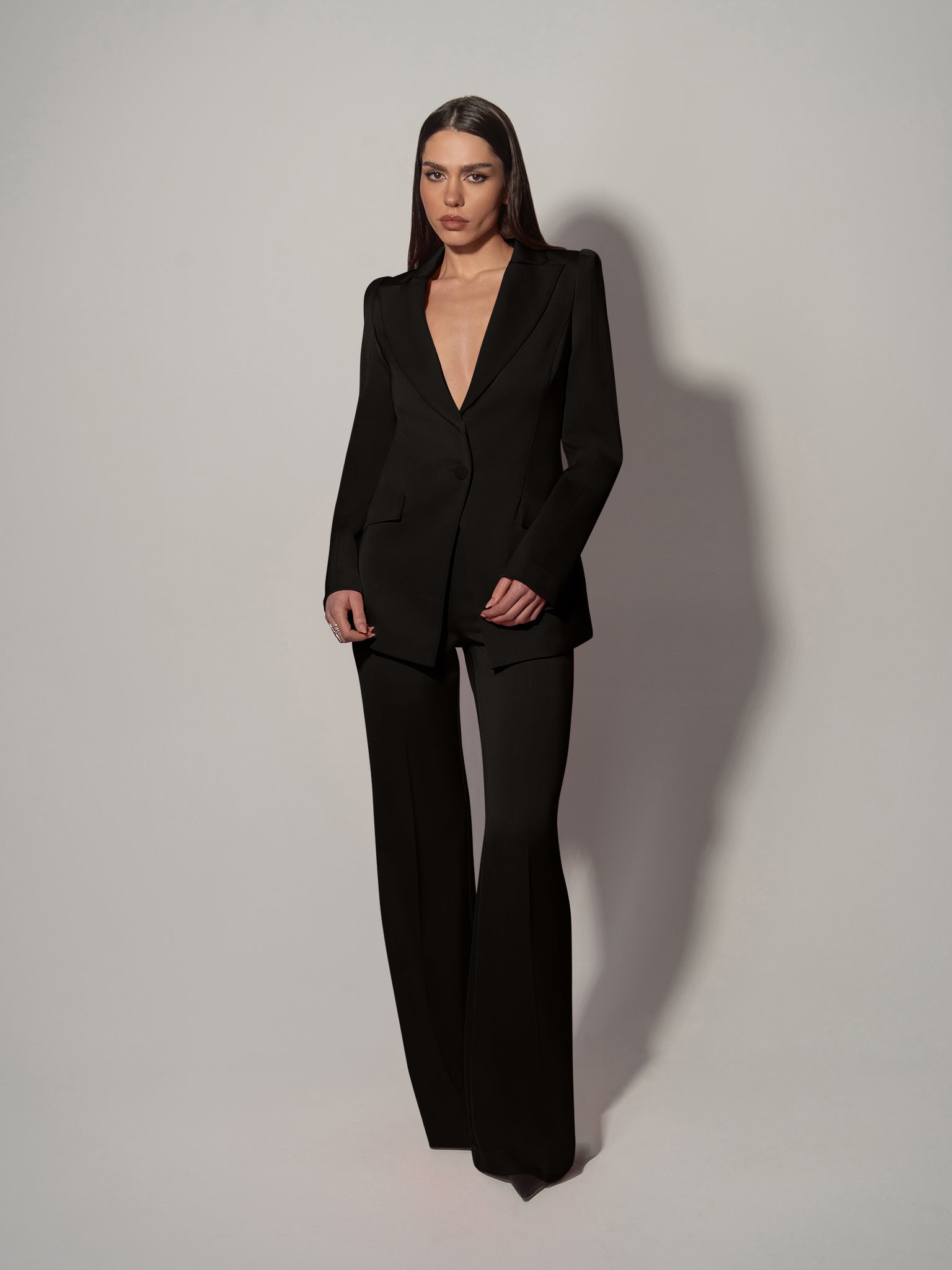 Style with the matching Tailored Straight-Leg Trousers or High-Waist Flared Trousers to complete this power look.